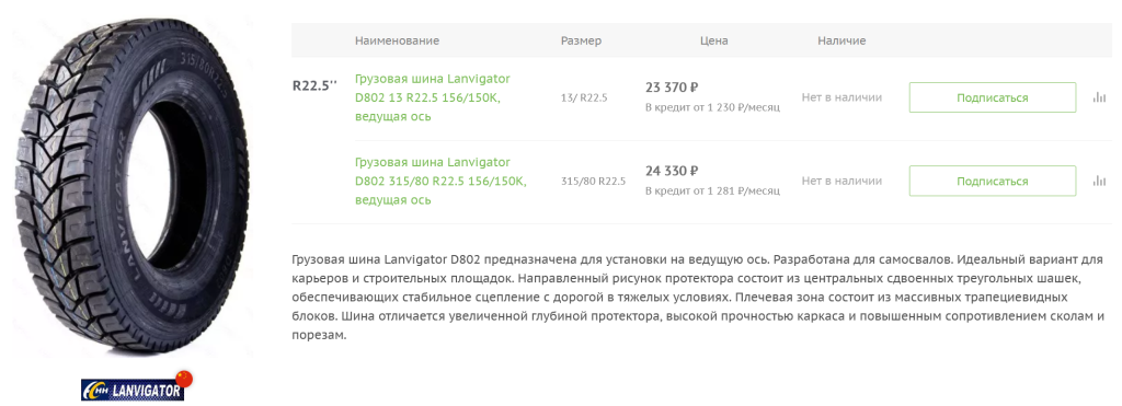 В интернет-магазине «Дальнобой» представлены грузовые шины Lanvigator — всех популярных размеров, которые вы можете легко купить по цене от 10190|RUB со склада, с быстрой доставкой по Москве и МО.