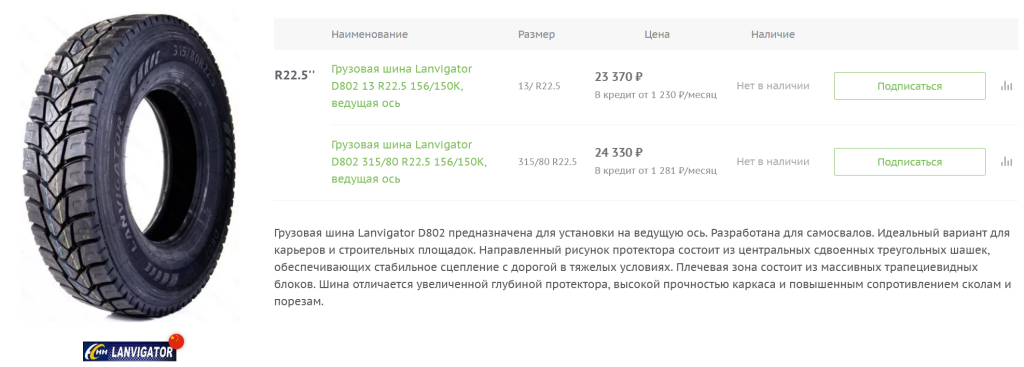 Модель Lanvigator D802 13 R22.5 156/150K и Lanvigator D802 315/80 R22.5 156/150K являются специализированными грузовыми шинами для ведущей оси.