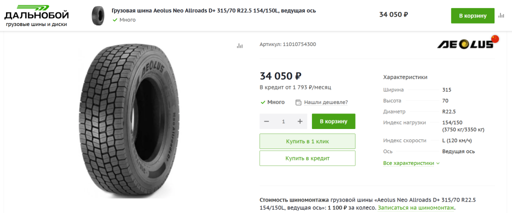 Грузовая шина Aeolus Neo Allroads D+ — это высококачественное решение для установки на ведущую ось вашего грузового транспортного средства. Эта шина обладает рядом превосходных характеристик, которые делают ее идеальным выбором для профессиональных водителей и транспортных компаний.