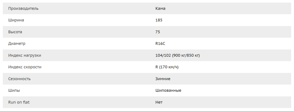 Стандартная маркировка шин для "Газели" включает: ширину – 175 мм, соотношение ширины к высоте – 80%, радиальную конструкцию – R16, индекс нагрузки – С (до 900 кг), уровень грузоподъемности – 96, скоростной индекс – N (140 км/ч).