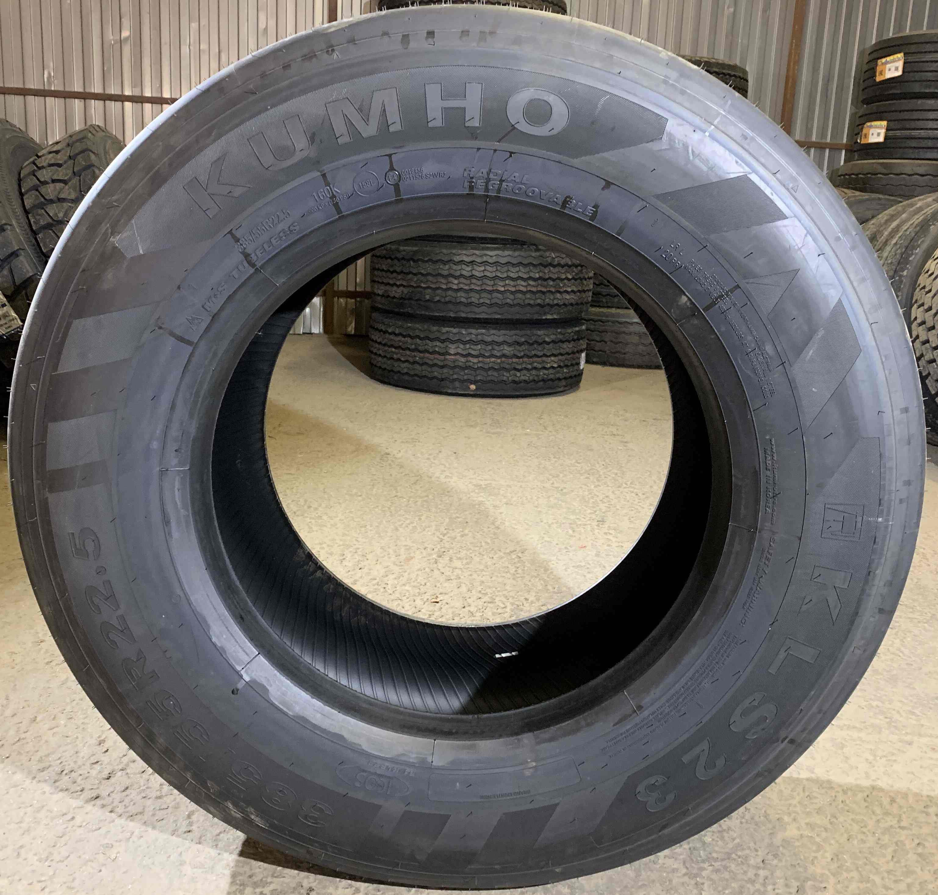 Стоимость шиномонтажа грузовой шины «Kumho KLS23 385/55 R22.5 160K, Рулевая ось»: 1 900 ₽ за колесо. Записаться на шиномонтаж.